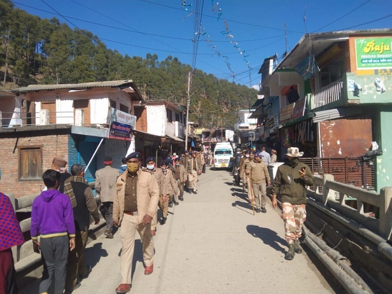 पुलिस अधीक्षक उत्तरकाशी के निर्देशन में विधानसभा सामान्य निर्वाचन- 2022 को शान्तिपूर्ण तरीके से सम्पन्न कराए जाने के उद्देश्य से पुलिस व आईटीबीपी के जवानों द्वारा बड़कोट व पुरोला में फ्लैग मार्च निकला गया, जिसमे जवानों द्वारा स्थानीय नागरिकों को चुनाव के दृष्टिगत शासन द्वारा प्रदेशभर में लागू ‘आदर्श आचार संहिता’ का पालन करने तथा निर्वाध,निष्पक्ष एवं शान्तिपूर्ण चुनाव में पुलिस एवं प्रशासन का सहयोग तथा अपने मताधिकार का प्रयोग करने की अपील की गई, साथ ही आमजन को कोविड अनुरुप व्यवहारों (मास्क,सामाजिक दूरी, नियमित साफ-सफाई आदि) के सम्बन्ध में जागरुक किया गया।