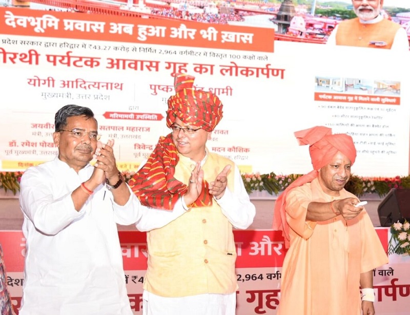 उत्तराखण्ड के मुख्यमंत्री श्री पुष्कर सिंह धामी ने हरिद्वार में भागीरथी पर्यटक आवास गृह के लोकार्पण एवं अलंकनन्दा पर्यटक आवास गृह के उत्तराखण्ड को हस्तांतरित करने पर उत्तर प्रदेश के मुख्यमंत्री श्री योगी आदित्यनाथ का आभार प्रकट किया। उन्होंने कहा कि नवम्बर 2021 में उत्तर प्रदेश एवं उत्तराखण्ड के मध्य परिसम्पतियों के बंटवारे को लेकर दोनों मुख्यमंत्रियों के बीच जो बैठक हुई थी, उसमें सभी मामलों का श्री योगी आदित्यनाथ जी द्वारा समाधान किया गया वह सराहनीय है। उन्होंने एक बड़े भाई का फर्ज निभाया। आज भौतिक एवं आध्यात्मिक विकास से नये भारत का निर्माण हो रहा है। योगी जी आध्यात्मिक चेतना को लगातार आगे बढ़ाने का कार्य कर रहे हैं। उनके नेतृत्व में उत्तर प्रदेश निरन्तर प्रगति के पथ पर अग्रसर है। उत्तर प्रदेश उत्तम प्रदेश बन रहा है।