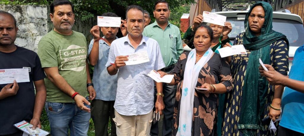 नागल हटनाला में प्रभावित परिवारों को अहैतुक धनराशि चैक वितरित।