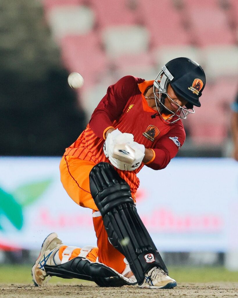 भानु प्रताप सिंह ने 28 गेंदों में एक चौका और पांच छक्कों की मदद से नाबाद 50 रन बनाकर पारी सम्हाली। कप्तान विजय शर्मा ने 10 गेंदों में 21 रन की तेज पारी खेली।